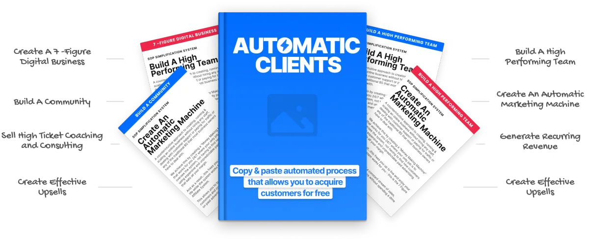 [INSERT ANSWER] You are getting a copy of the Automatic Clients ebook, available instantly. You are getting the highly praised 6+ hour Advanced Acquisition Theory course. You are getting our advanced Economics Calculator. You are getting our 2,854 Profitable Niches spreadsheet. You’re getting the 7-Day Fast Start video series, our best $200,000 Advertisement, access to our FB community, our 7-Figure Video Sales Letter script, and a 26-step Launch Checklist.